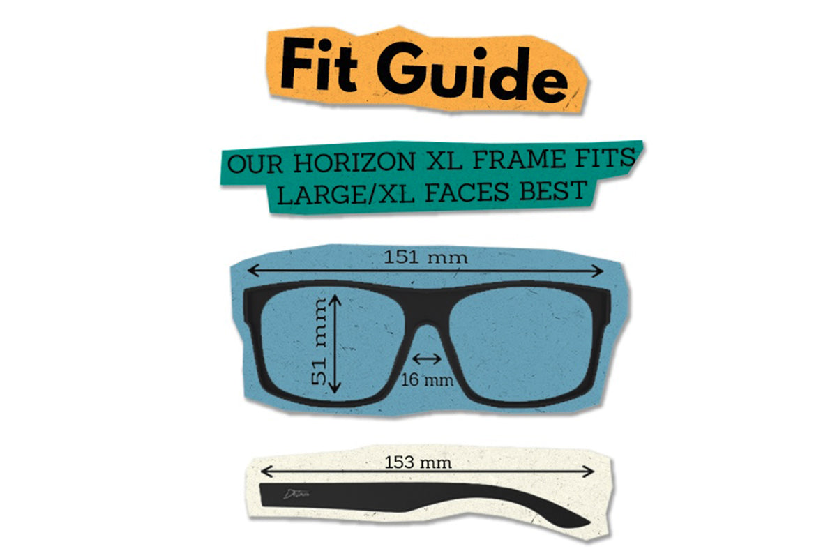 XL sunglasses for big heads. Our Horizon XL frame fits large/XL faces best. If sunglasses normally feel tight, look small, or don’t cover all of your eye region, then you should try our XL line.