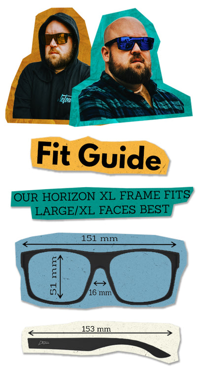 Big frame for the big dogs! Horizon XL typically fits like a glove for those who have trouble finding a pair of shades that doesn't look too small on their head.