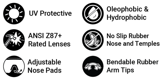 The oleophobic lens coating adds a barrier that makes wiping smudges effortless and helps extend the life of your lenses. The Hydrophobic coating will repel water keeping your vision clear and avoiding the need to wipe your lenses dry, again extending the life of your lenses.
