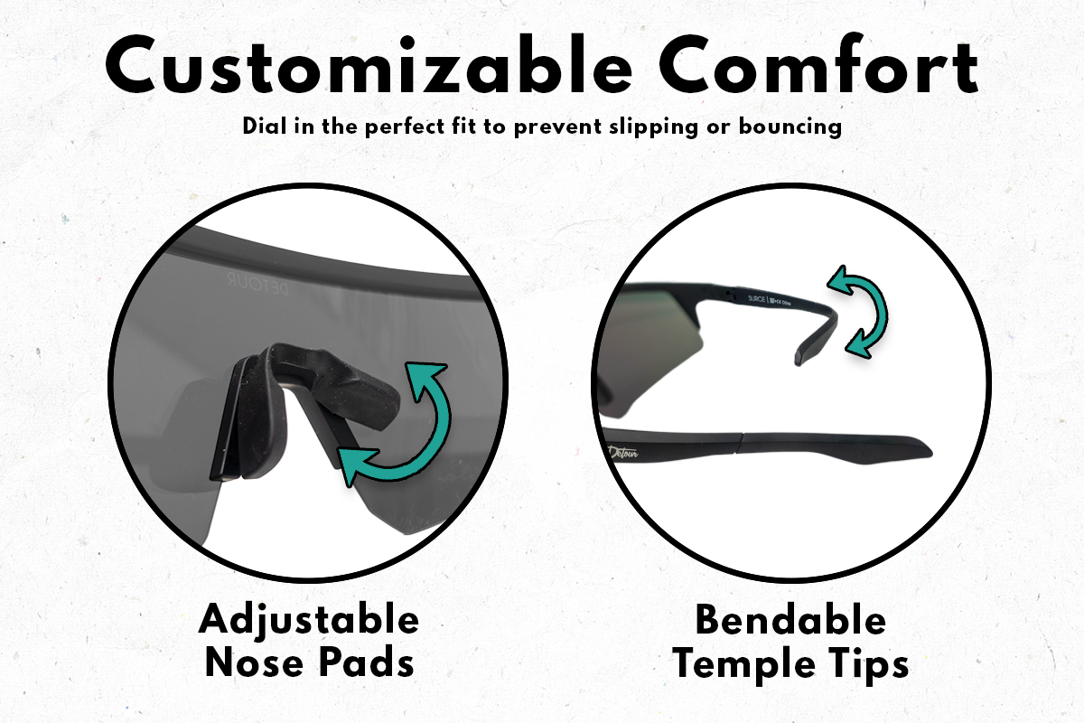 Designed for the batting cages, the trails, the long miles, Surge is our first ever frame built purely for sport. Adjustable wire-core arms and customizable nose pads let you dial in a secure, comfortable fit so you can move freely. Our HiFi high-contrast lenses sharpen your surroundings, enhance colors, and keep you focused on what's ahead. With ANSI Z87+ safety ratings and impact protection, Surge is ready for all the curveballs.